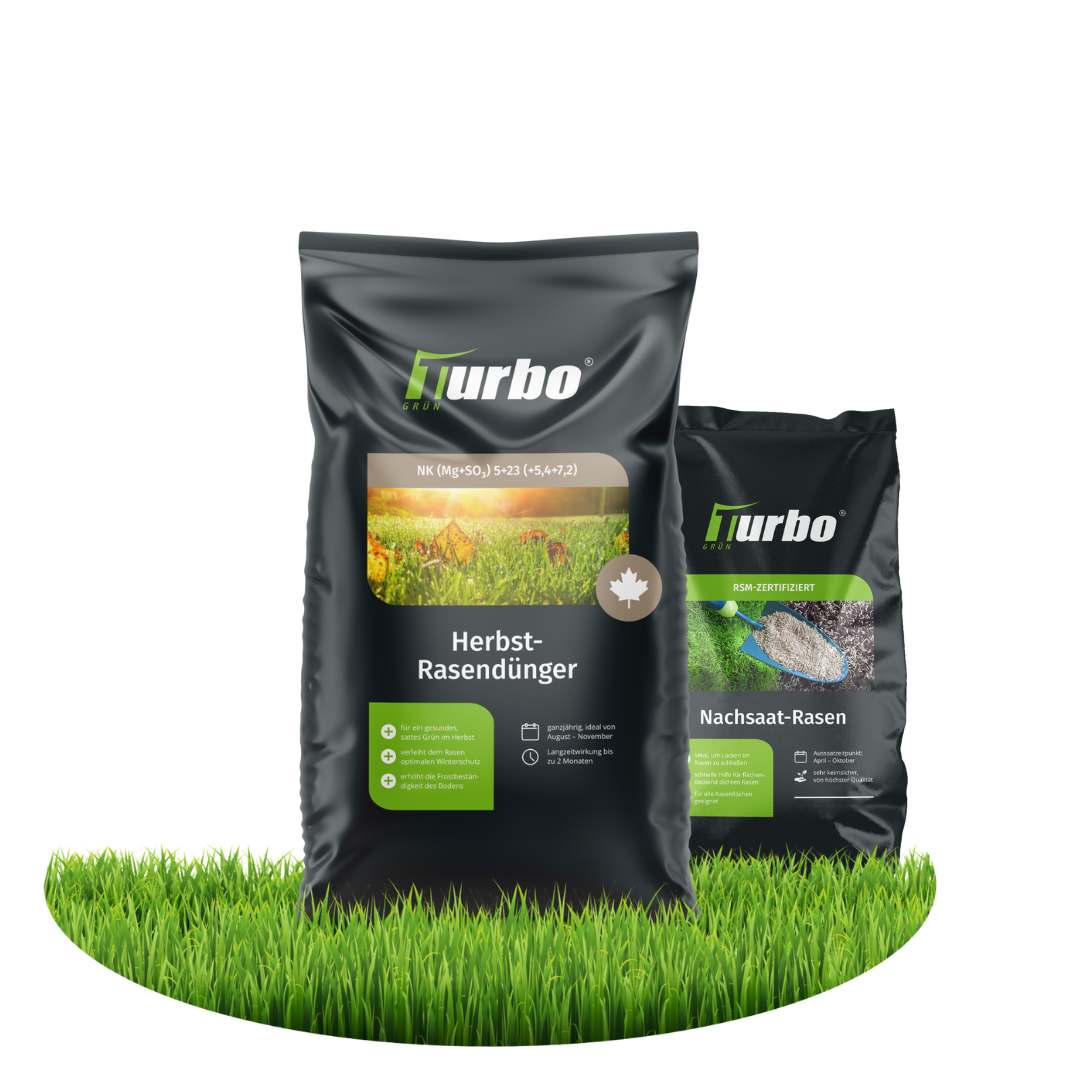 500 m²: 1x 10 kg Herbst-Rasendünger; 3x 1 kg Nachsaat