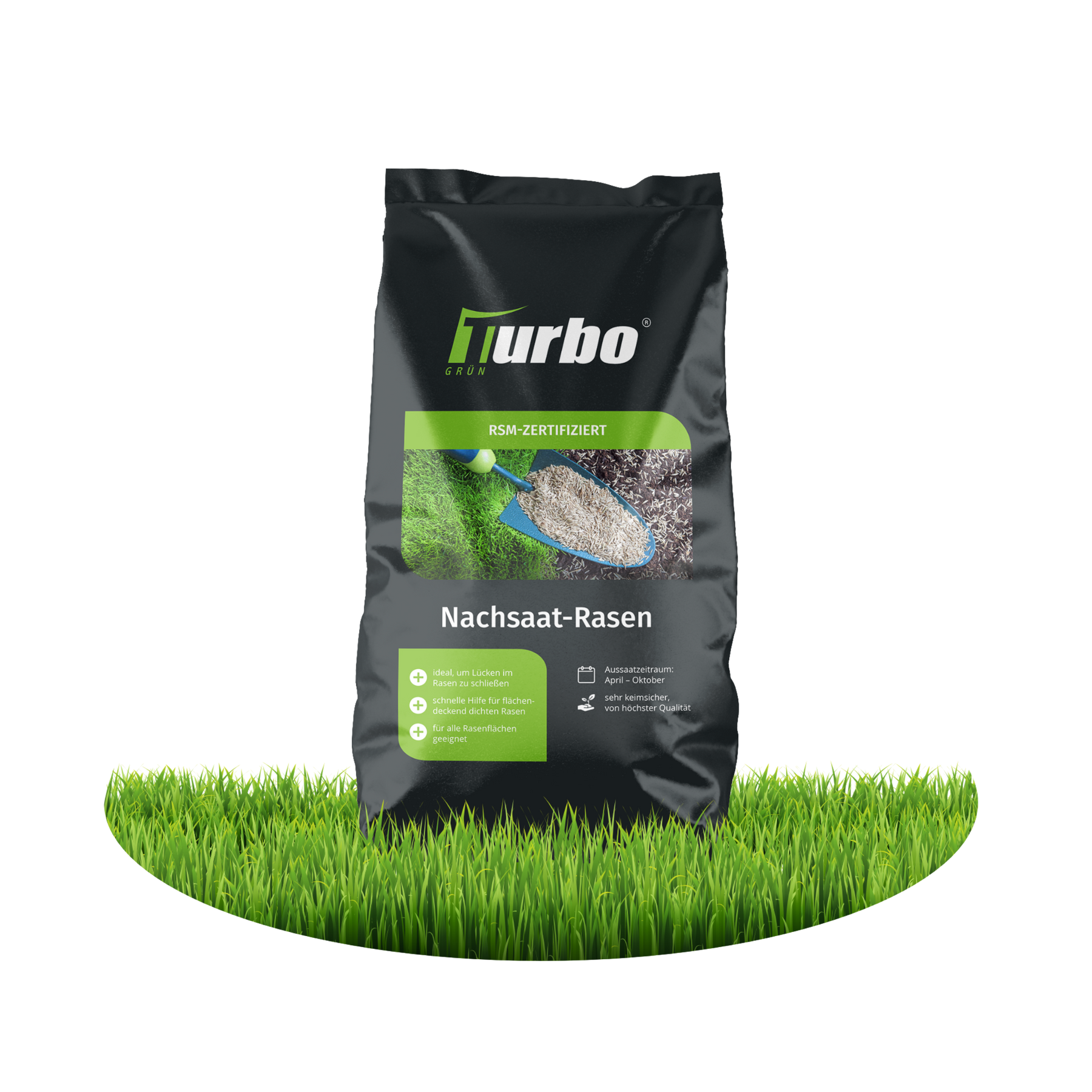 Bei Turbogrün bekommst du den besten Nachsaat-Rasen für dein Grün. Die RSM-Mischung ist von höchster Qualität und beim Vergleich mit anderen Mischungen ist ein deutlich dichterer und kräftigerer Wuchs der Turbogrün-Nachsaat erkennbar.