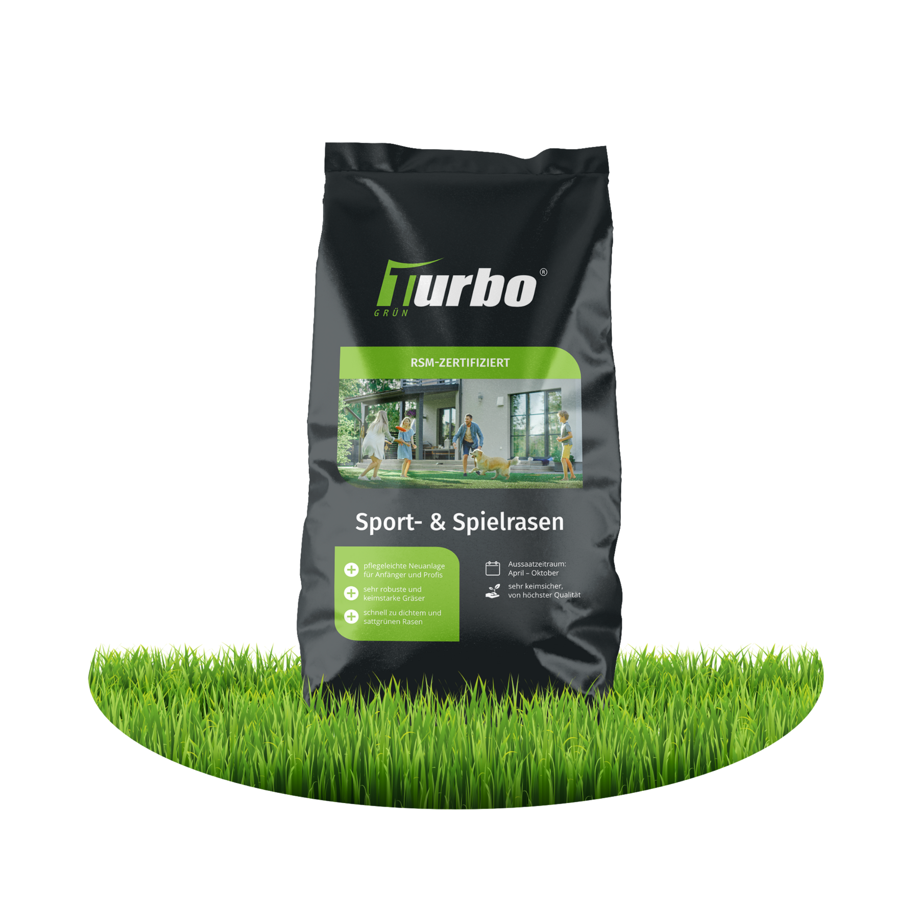 Der Turbogrün Sport- und Spielrasen hält einiges aus, er ist durch seine hohe Triebzahl sehr robust und ideal für Spiel und Spaß geeignet. Die Rasensamen sind RSM-zertifiziert und von höchster Qualität und somit auch sehr keimsicher. Die Samen eignen sich ideal für eine Rasenneuanlage.