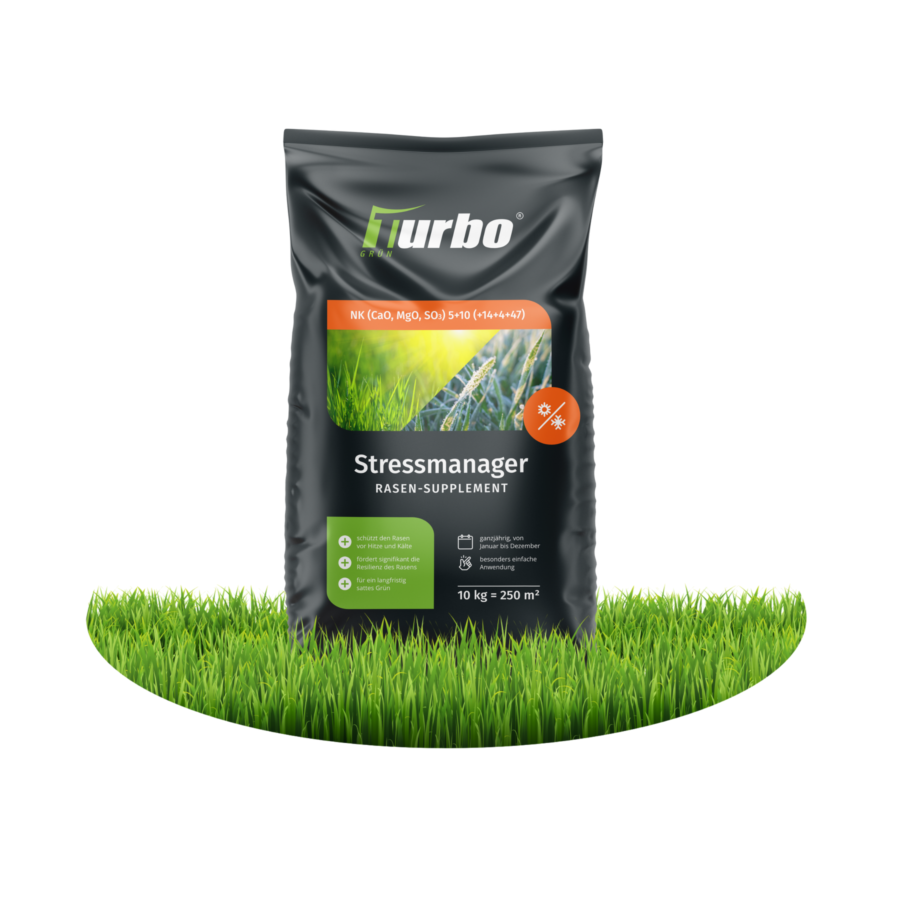 Unser Turbogrün-Stressmanager versorgt deinen Rasen mit Kalium
