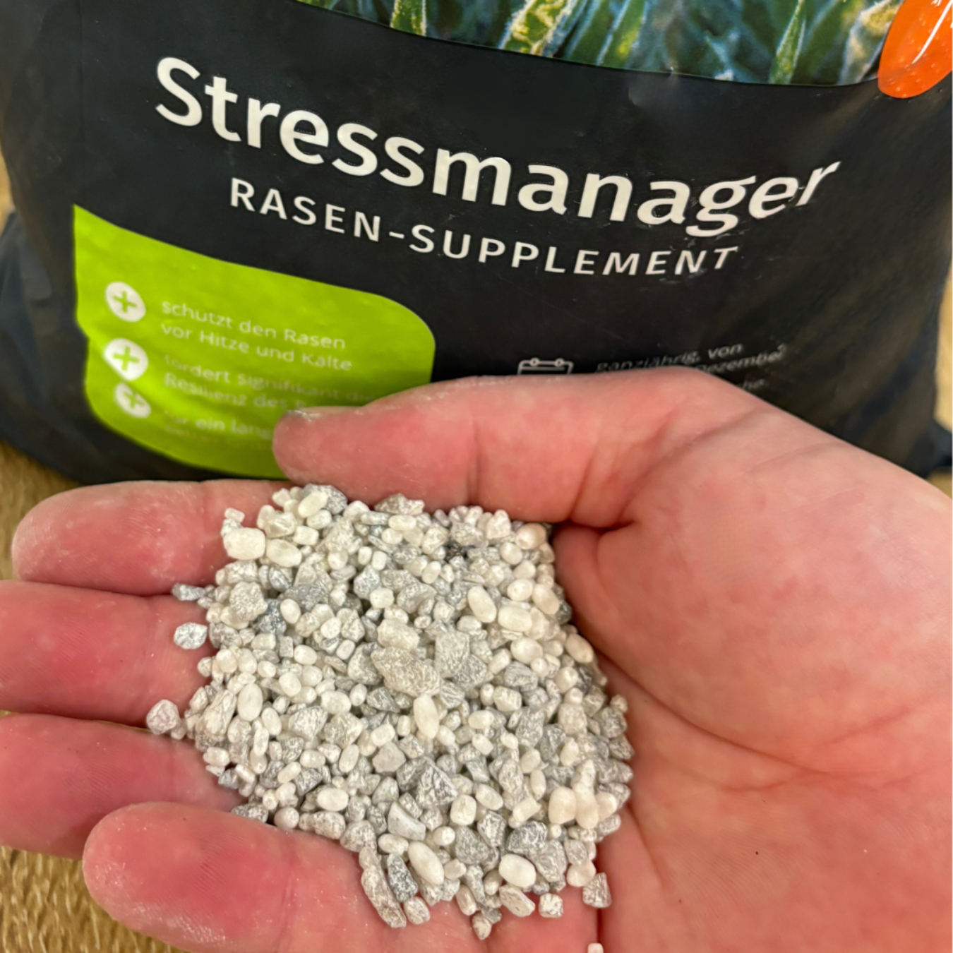 Der Stressmanager stärkt Rasen gegen Trockenheit und Frost. Er fördert die Wasserspeicherung und verbessert die Zellstruktur der Gräser, was zu einer erhöhten Widerstandsfähigkeit führt.