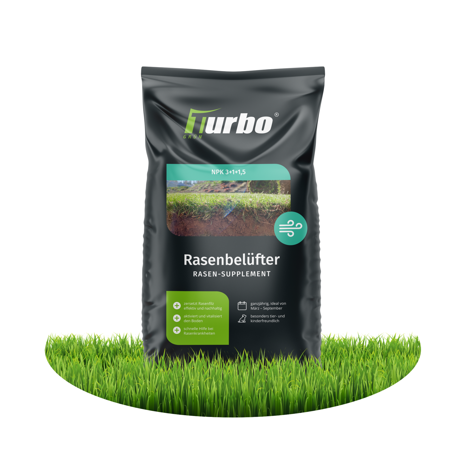 Der Rasenbelüfter zersetzt Rasenfilz, er erhöht die Bodenatmung und aktiviert durch die enthaltenen Mikroorganismen das Bodenleben. Er ist zu 100 % natürlich und fördert bei einer Neuansaat außerdem die Wurzelbildung. Somit ist es ein Next Level Bodenaktivator, der für jeden Rasenliebhaber ein Muss ist. Denn nur durch ein aktives Bodenleben und wenig Rasenfilz kann der Rasen sattgrün und gesund sein. Der Rasenbelüfter wird auch auf Profi-Golf- und Fußballplätzen angewendet.