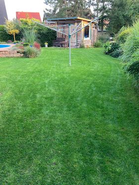 Nach dem Aufbringen sollte der Rasen gut gewässert werden oder es kann natürlicher Regen genutzt werden, um die Nährstoffe schnell in den Boden einzubringen.